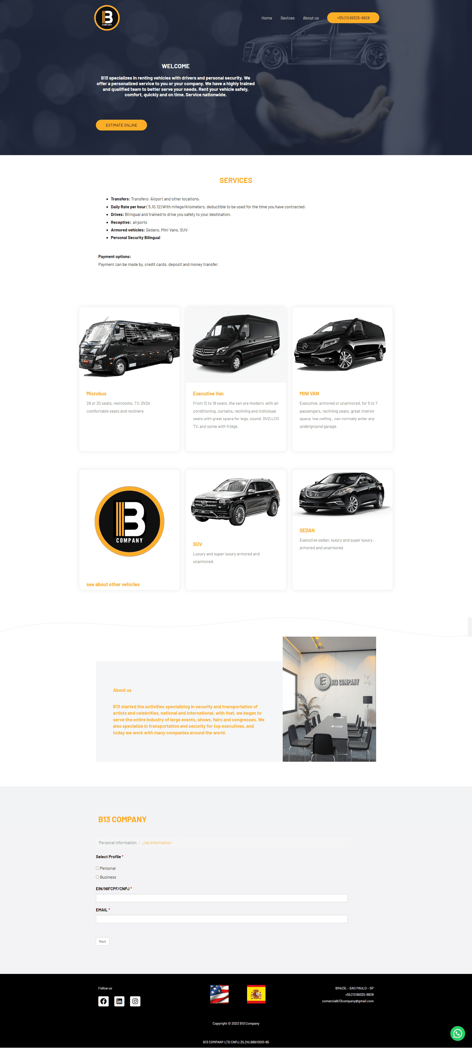 Com um visual sofisticado e funcionalidade aprimorada, o site da B13 Company se posiciona como uma ferramenta essencial para atrair e engajar clientes em busca de serviços de transporte de luxo e segurança.